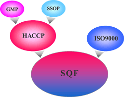 SQFとは「Safe Quality Food」の頭文字をとったもので、製品の安全や品質を管理する仕組みとして豪州で生まれ、世界各国に広がり、支持を得ている国際認証規格です。世界最大の小売「ウォルマート」が取引先にSQF認証取得を義務付けるなど、米国の小売協会を中心として高い信頼が置かれる安全・品質管理システムです。 HACCP(危害分析)の管理手法をベースとし、マネジメントプログラムとしてHACCPに欠けている部分を補強した内容になっています。 |